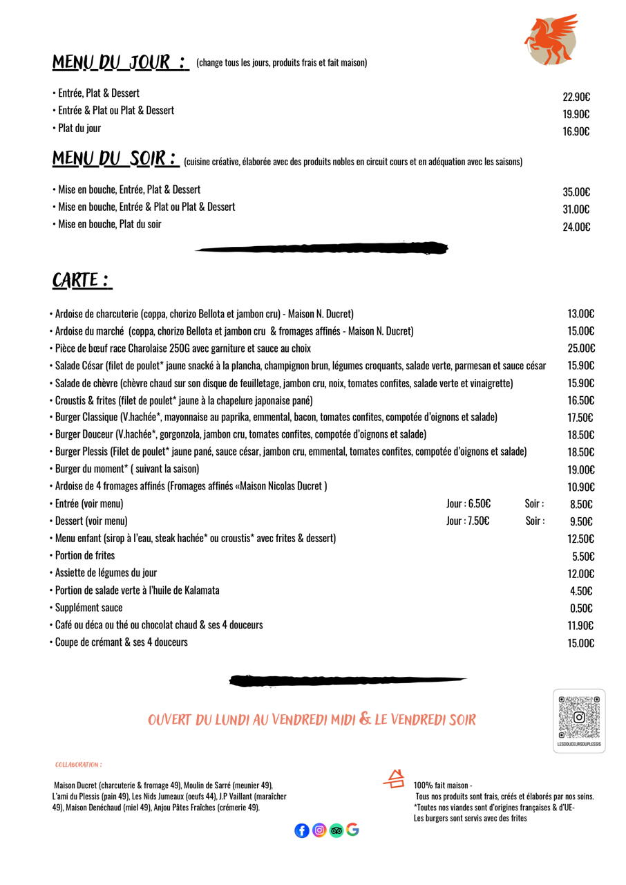Notre menu change chaque jour, au rythme des saisons et des inspirations, dans une démarche éthique, locale et anti-gaspi chaque produit est revalorisé.